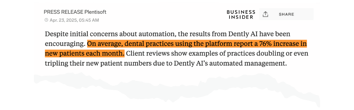 This site is not a part of the Facebook website or Meta Platforms, Inc. Additionally, this site is NOT endorsed by Facebook in any way. FACEBOOK is a trademark of Meta Platforms, Inc. | By submitting your information, you agree to Dently.AI’s Privacy Policy and understand that we will use your information for the primary purpose of communicating with you and marketing our services. | Dently.AI provides managed marketing and automation services for dental practices and does not sell or license standalone software. | Guarantee and performance claims are subject to Terms and Conditions. | Market Sprinter AB | Studievagen 22, 70217 Orebro, SE | +1 415-329-3862 | Correspondence Address: 1875 Mission St 103, San Francisco, CA 94103