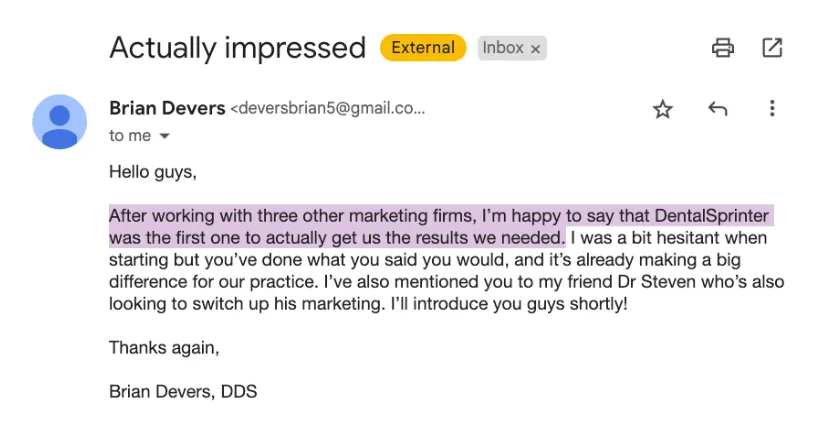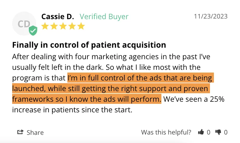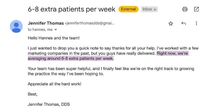 Yes, our system absolutely works even when using another marketing agency. We understand that most dental practices are already doing a lot of things to market and that’s why we’ve designed our system to “snap on” to what they’re already doing.