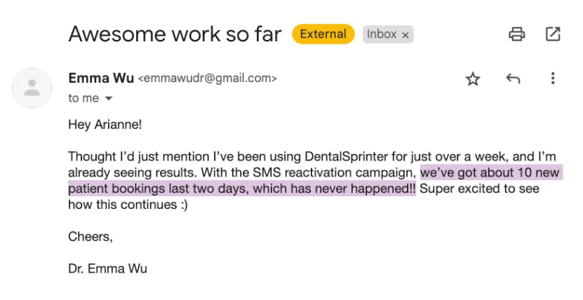 “It’s a huge step forward for both locations. AI handles patient conversations and reminders, saving us time, while SMS campaigns and referrals help us grow without chasing leads.”